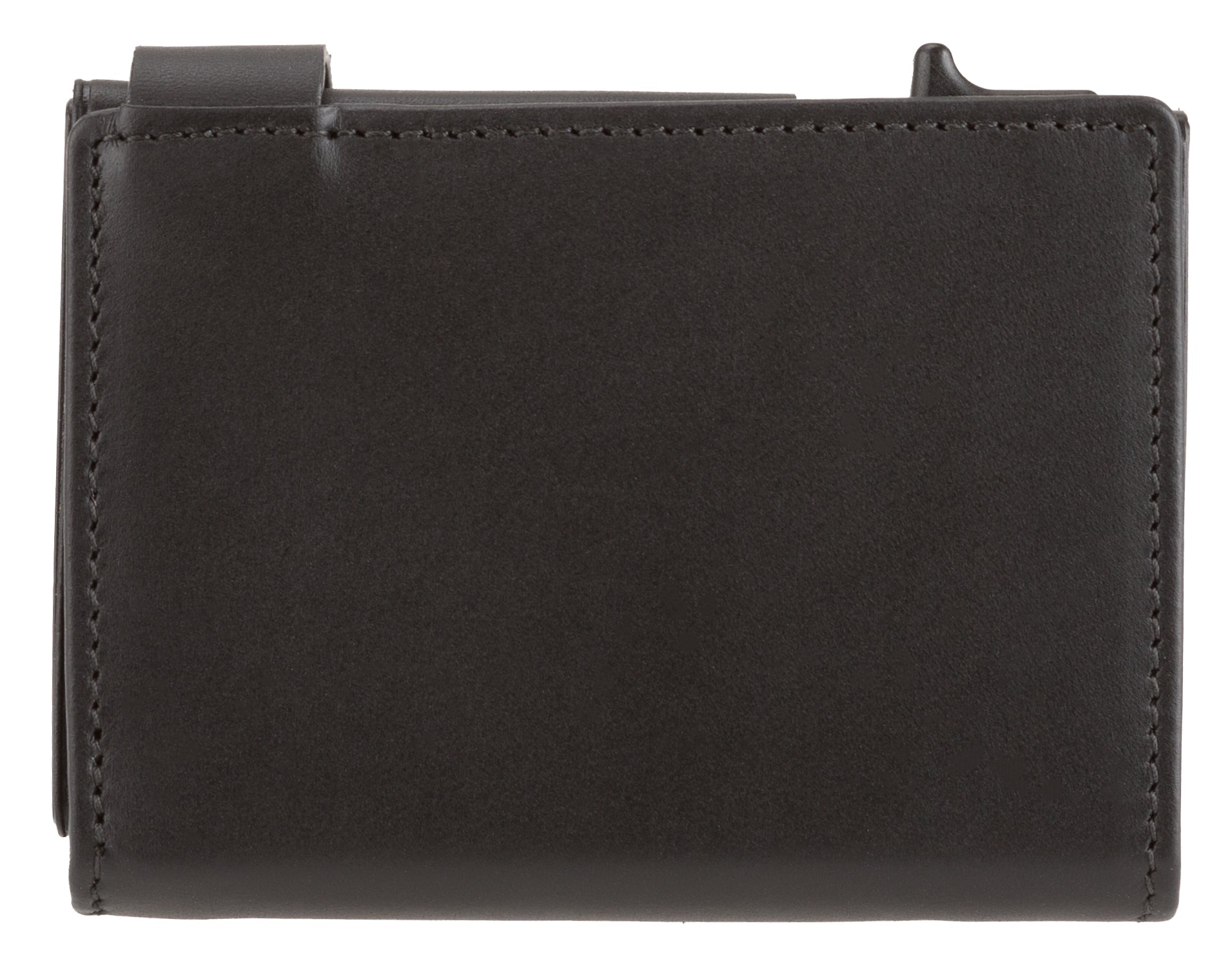 FLO schwarz glatt Amazaque 2081.01.02. Maße (B/H/T): ca. 9,5 cm x 7 cm x 2 cm. RFID geschütztes Aluminiumschubfach. Hochwertiges Branding im Leder.