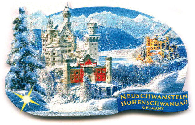 Magnet Schloss Neuschwanstein & Schloss Hohenschwangau – 3D Glitzer Souvenir aus Bayern